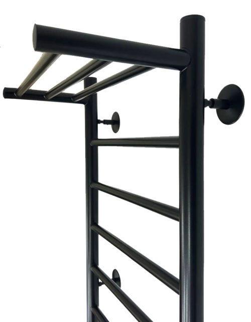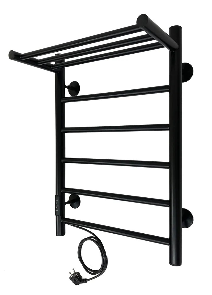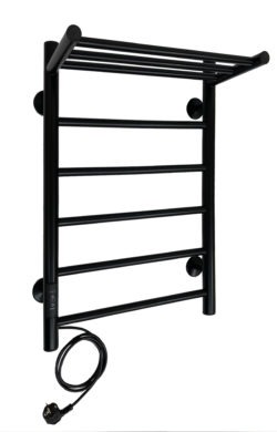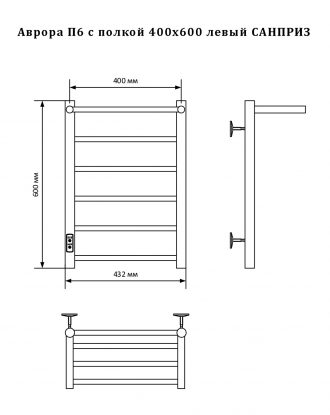 Полотенцесушитель электрический 400х600 САНПРИЗ АВРОРА П6 с полкой, чёрный матовый, скрытое подключение слева