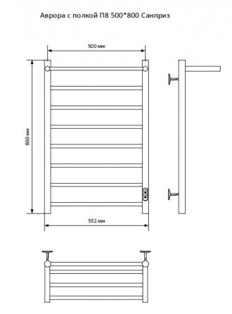 Полотенцесушитель электрический 500х800 САНПРИЗ АВРОРА П8 с полкой, хром глянцевый, универсальное скрытое подключениеПолотенцесушитель электрический 500х800 САНПРИЗ АВРОРА П8 с полкой, хром глянцевый, универсальное скрытое подключение