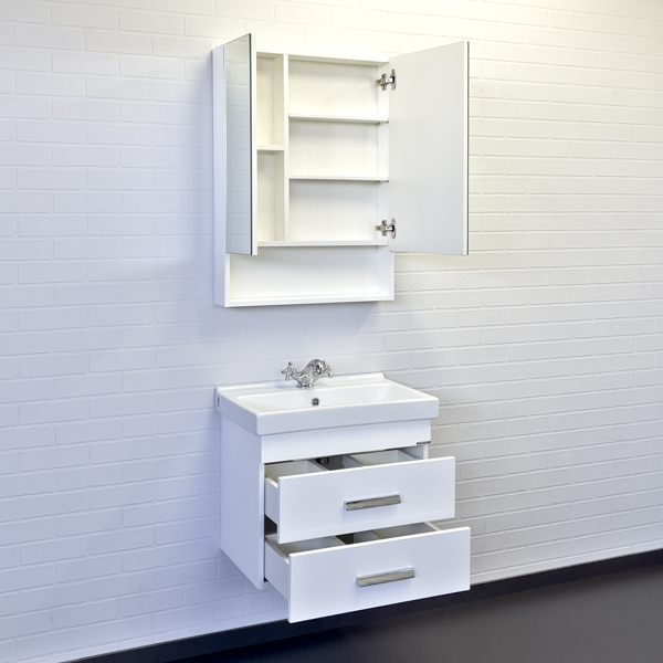 Шкаф-зеркало Никосия 60 Белый глянец