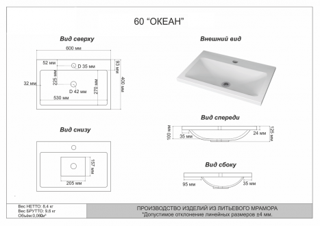 Тумба подвесная Кристалл 60 Шато азур с умывальником Океан 60
