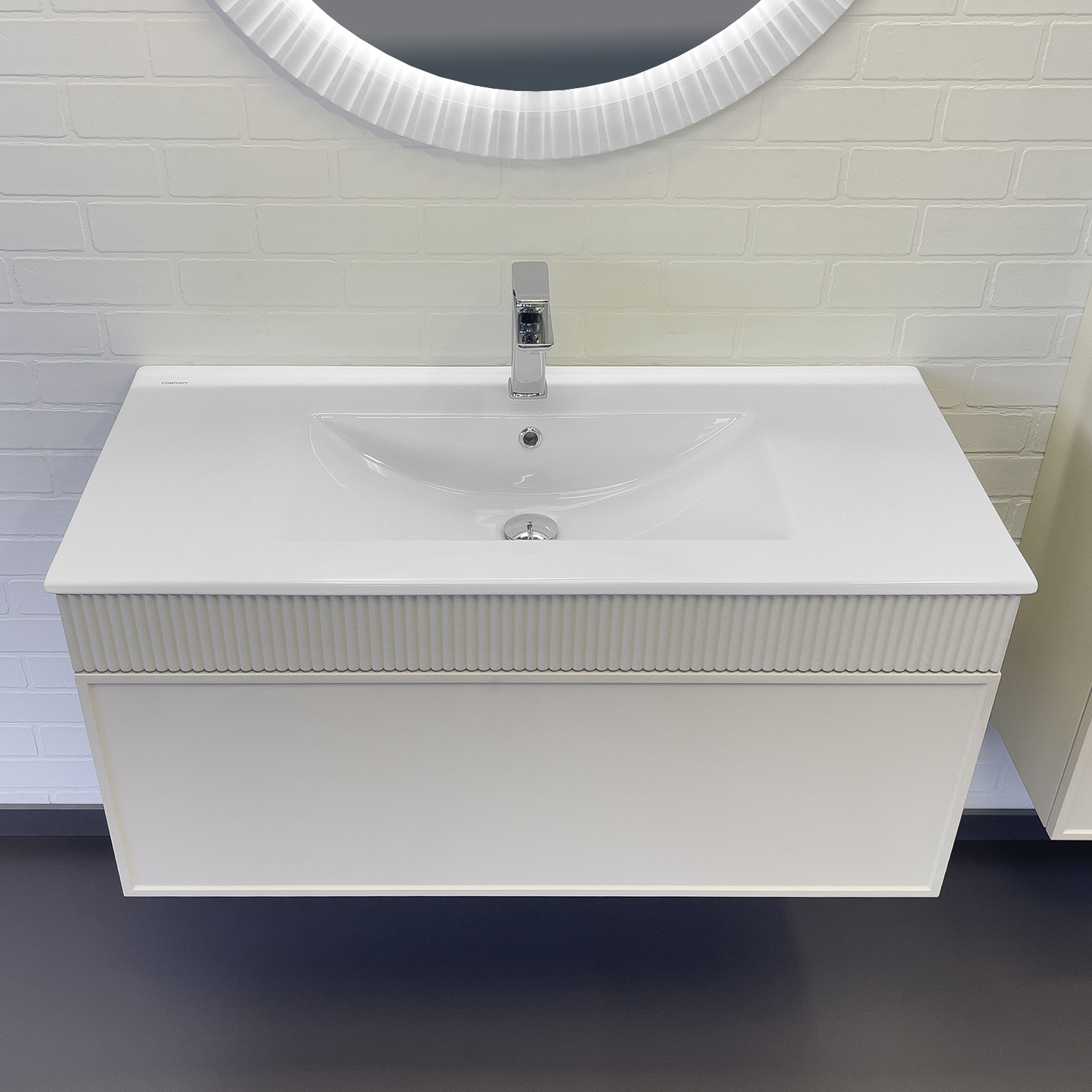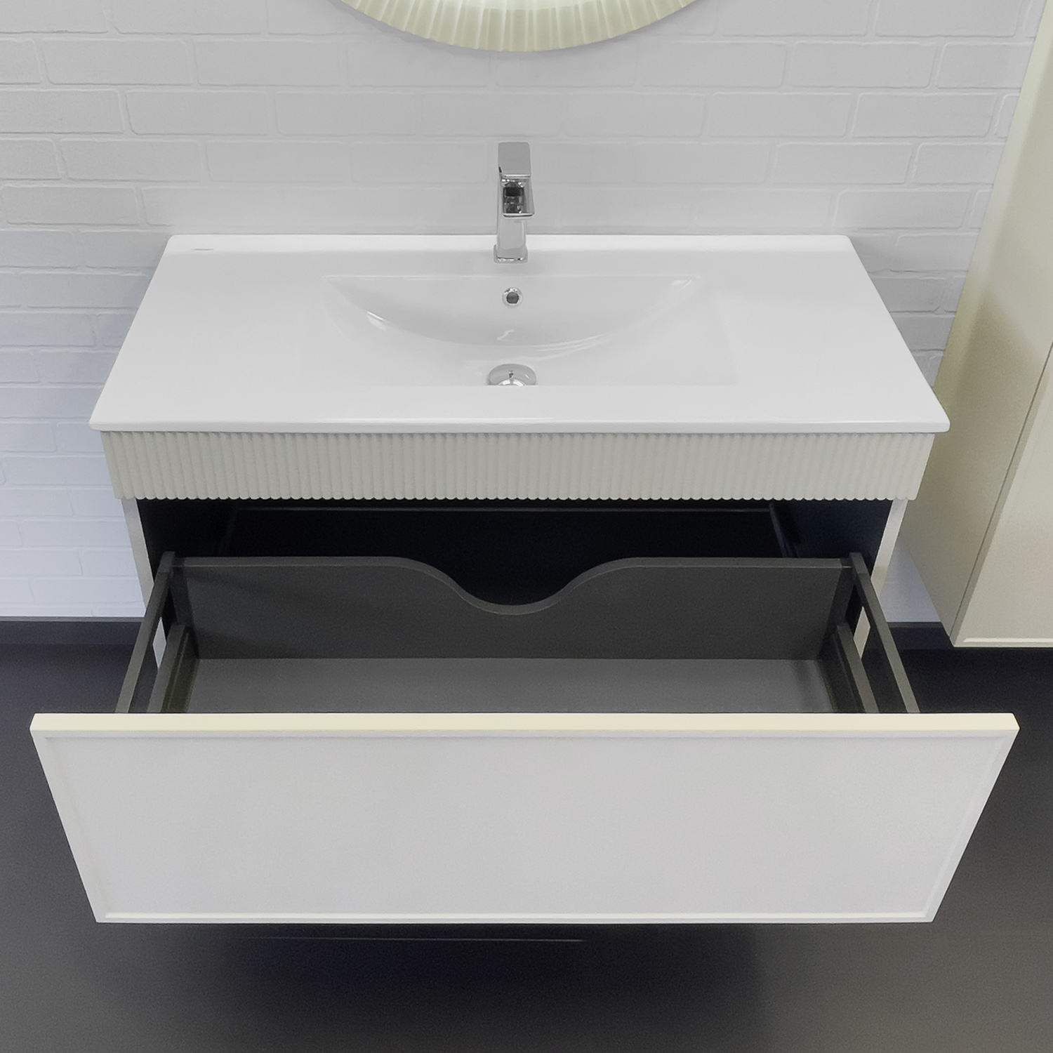 Тумба подвесная Мадрид 100 Серый шёлк с умывальником Comforty 100