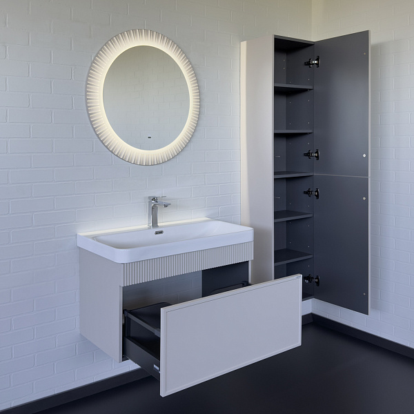 Тумба подвесная Мадрид 80М Серый шёлк с умывальником CF1959BX-80