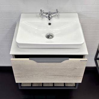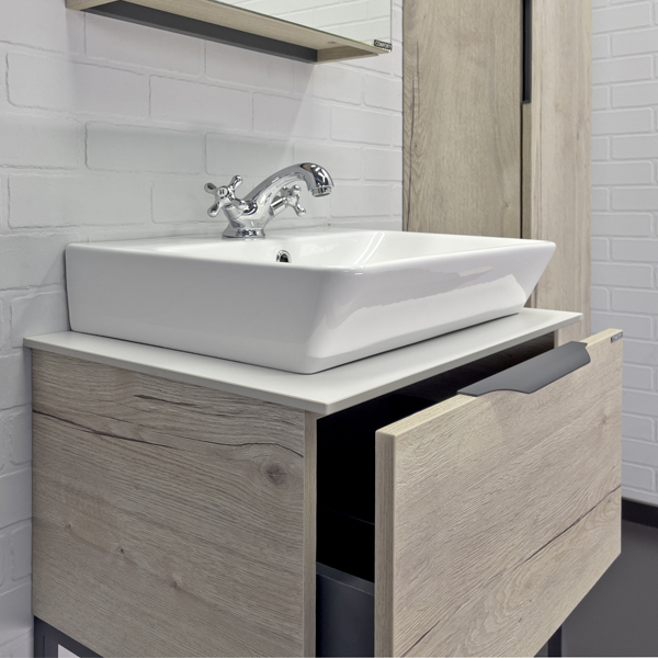 Тумба подвесная Порто 60 Дуб дымчатый со столешницей и умывальником 9055RA