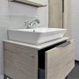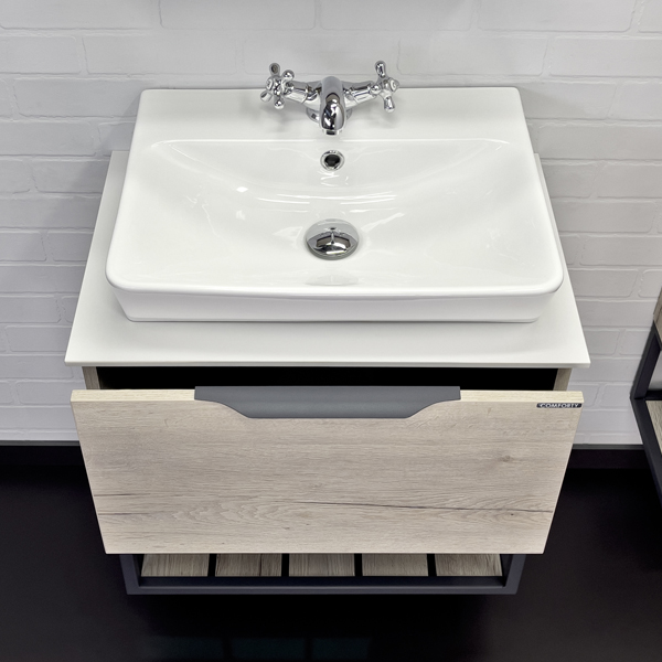 Тумба подвесная Порто 60 Дуб дымчатый, 1 ящик, со столешницей из керамогранита и умывальником Comforty 9055RA