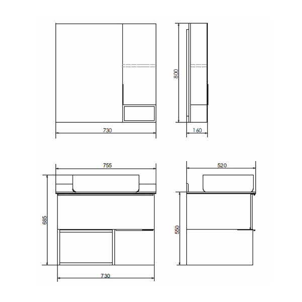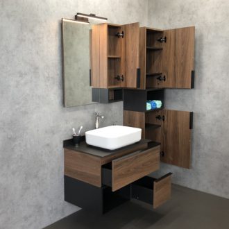 Тумба подвесная Штутгарт 75 Дуб тёмно-коричневый с чёрной матовой столешницей и умывальником Comforty T-Y9378